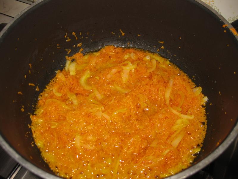 Prepariamo un soffritto con la cipolla, tagliata a fettine sottili, e le 3 carote grattugiate. A questo punto uniamo il pezzo di carne e facciamolo rosolare bene da tutti i lati e solo quando sarà ben colorito sfumiamolo con un mezzo bicchiere di vino rosso.Nel frattempo prepariamo un litro di brodo (io lo faccio semplicemente con acqua e dado). Quindi aggiungiamo all’arrosto tutte le spezie e il brodo.