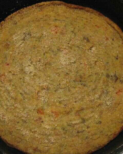 Versare il tutto in un ruoto da forno, precedentemente oleato, spolverare con del pane grattugiato ed infornare per 15 min a 180°.