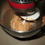 Montate il gancio, azionate la macchina a velocità media. Aggiungete i 100 g di acqua e la crema di pomodori secchi poco per volta. Lavorate per 10 minuti a velocità media.