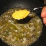 A questo punto aggiungere 3 cucchiaini di concentrato di pomodoro e un paio di mestoli di acqua di cottura. Calare la pasta, senza mettere troppo sale all’acqua poichè il condimento risulterà molto saporito.
