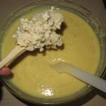 Una volta ottenuto un composto omogeneo frullate i canditi insieme ad un cucchiaio di grano cotto ormai freddo e incorporateli all’impasto di uova e ricotta.