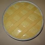 Avvolgete la frolla intorno al mattarello infarinato e trasferitela in uno stampo precedentemente imburrato e infarinato. Fate una leggera pressione con le dita per far aderire bene la pasta e con un coltellino eliminate l’eccesso di pasta, impastatelo nuovamente e tenetelo da parte. A questo punto riprendete il ripieno e versatelo all’interno della base.