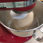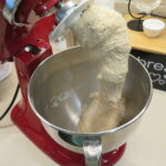 2. Proseguite sino a terminare completamente la farina, poi aumentate leggermente la velocità della planetaria ed impastate per 3-4 minuti. Aggiungete quindi il sale e impastate ancora sino a che non sarà ben incorporato.