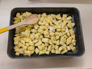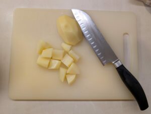 • Tagliatele in modo da ricavare dei cubi grossi circa 3 cm.