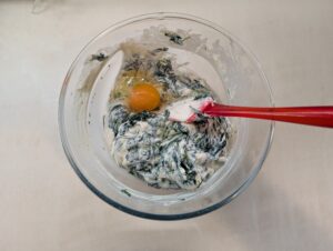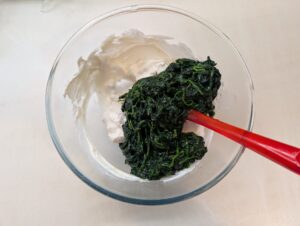 - Lasciate intiepidire gli spinaci e nel frattempo versate la ricotta in una ciotola. Aggiungete sale, pepe e gli spinaci ormai tiepidi. Mescolate bene.