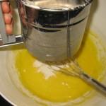 Unite quindi il burro fuso ma non caldo e mescolate con cura. A parte setacciate la farina insieme al lievito e al sale e incorporatela nell’impasto.